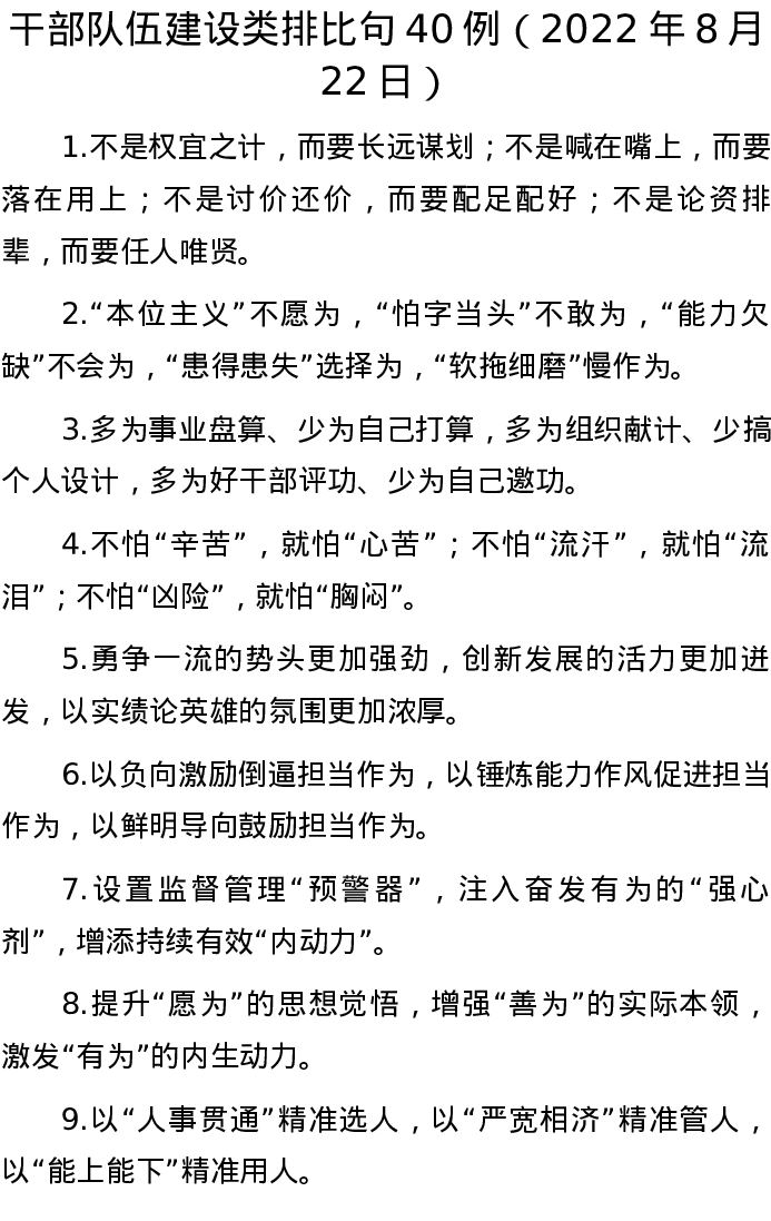 20220822【写作素材】干部队伍建设类排比句40例(2022年8月22日)
