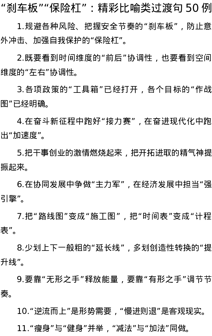 20220823【写作素材】“刹车板”“保险杠”:精彩比喻类过渡句50例