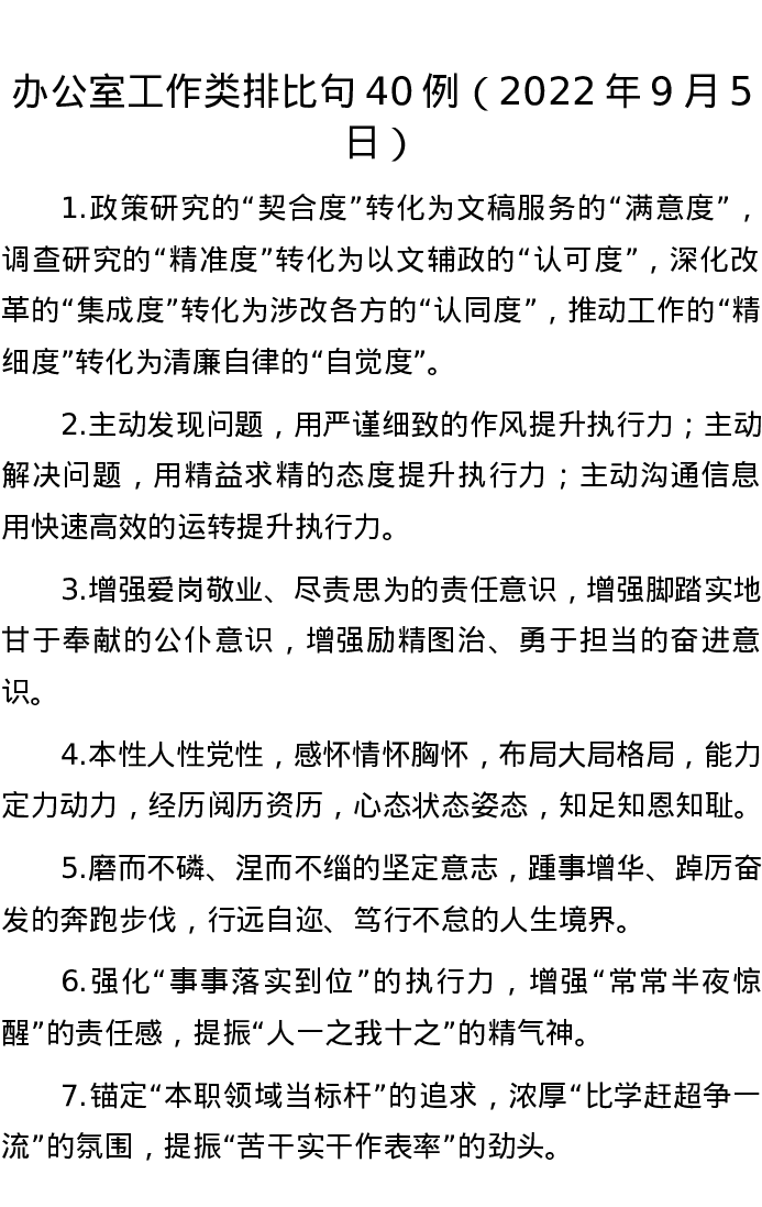 20220905【写作素材】办公室工作类排比句40例(2022年9月5日)