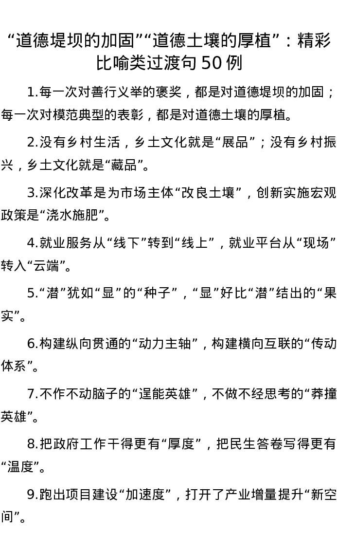 20220908【写作素材】“道德堤坝的加固”“道德土壤的厚植”:精彩比喻类过渡句50例