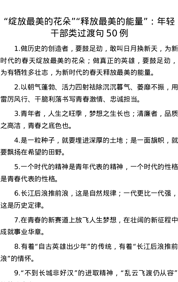 20220909【写作素材】“绽放最美的花朵”“释放最美的能量”:年轻干部类过渡句50例
