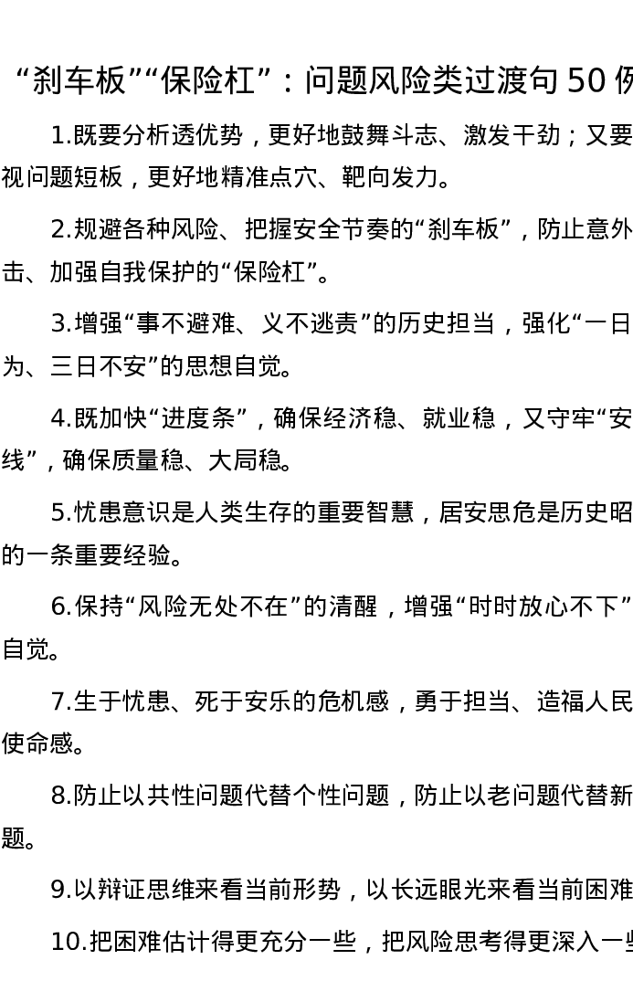 20220910【写作素材】“刹车板”“保险杠”:问题风险类过渡句50例