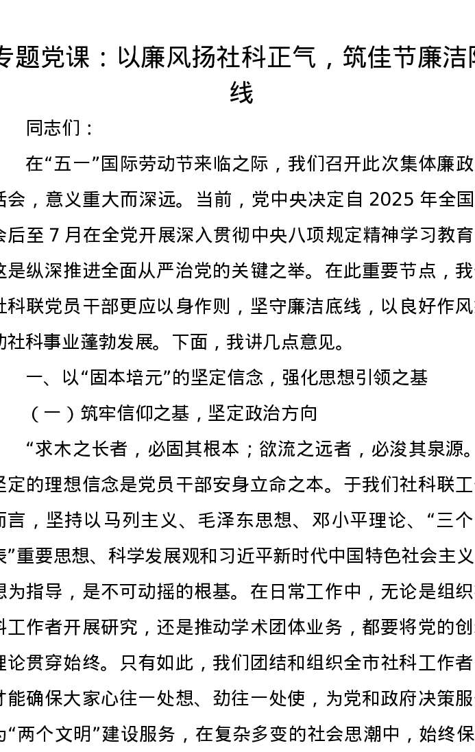 党课讲稿:以廉风扬社科正气,筑佳节廉洁防线