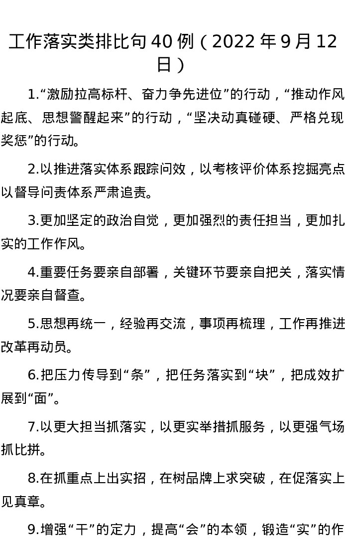 20220912【写作素材】工作落实类排比句40例(2022年9月12日)
