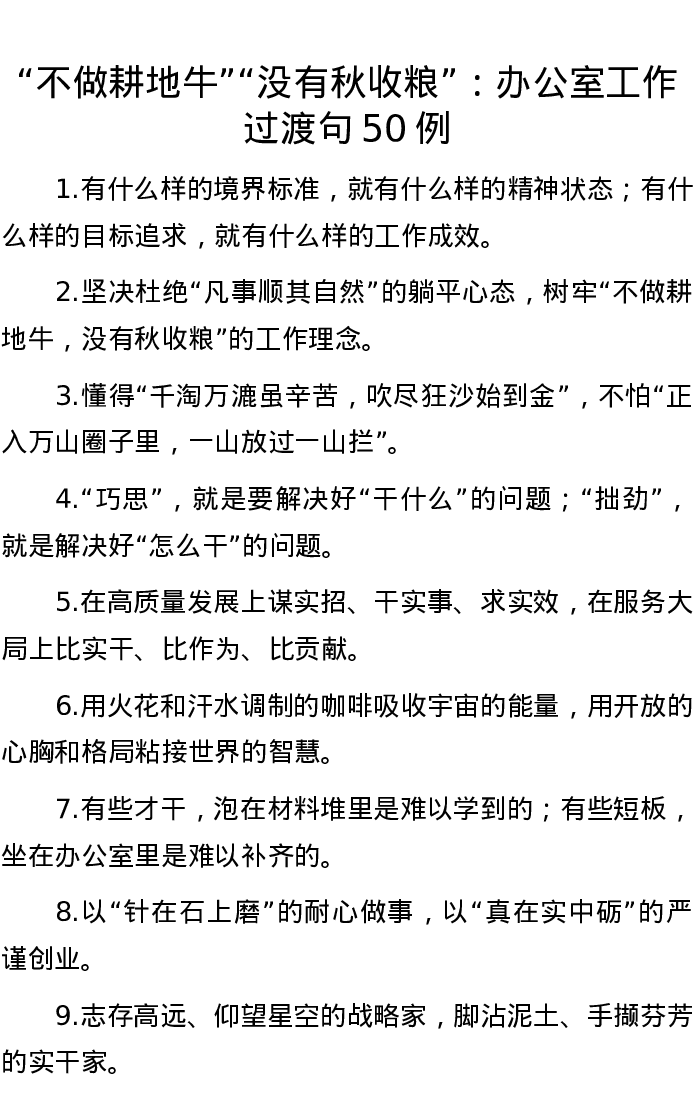 20220913【写作素材】“不做耕地牛”“没有秋收粮”:办公室工作过渡句50例
