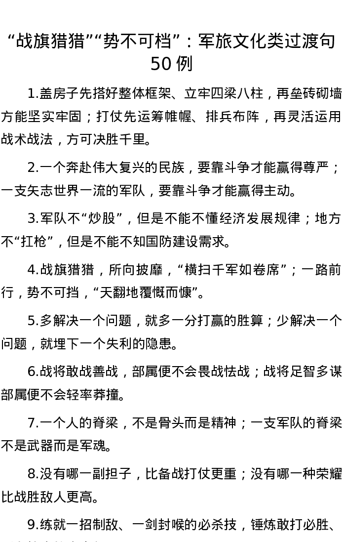20220914【写作素材】“战旗猎猎”“势不可档”:军旅文化类过渡句50例