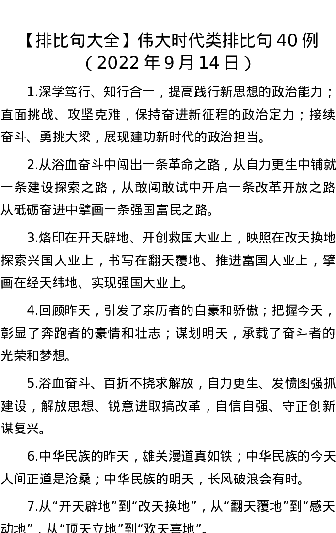 20220914【写作素材】【排比句大全】伟大时代类排比句40例(2022年9月14日)