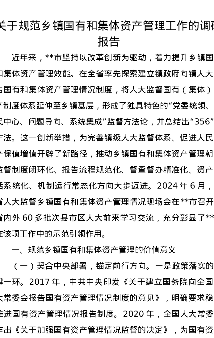 关于规范乡镇国有和集体资产管理工作的调研报告