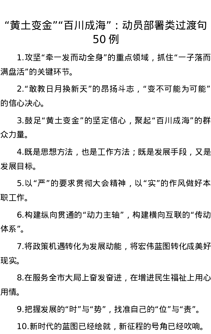 20220917【写作素材】“黄土变金”“百川成海”:动员部署类过渡句50例
