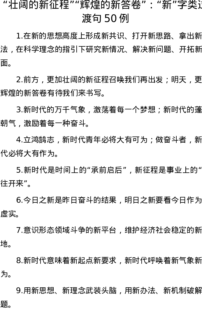 20220919【写作素材】“壮阔的新征程”“辉煌的新答卷”:“新”字类过渡句50例