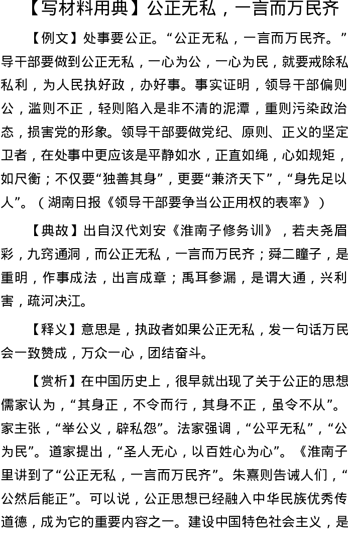 20220919【写作素材】【写材料用典】公正无私,一言而万民齐