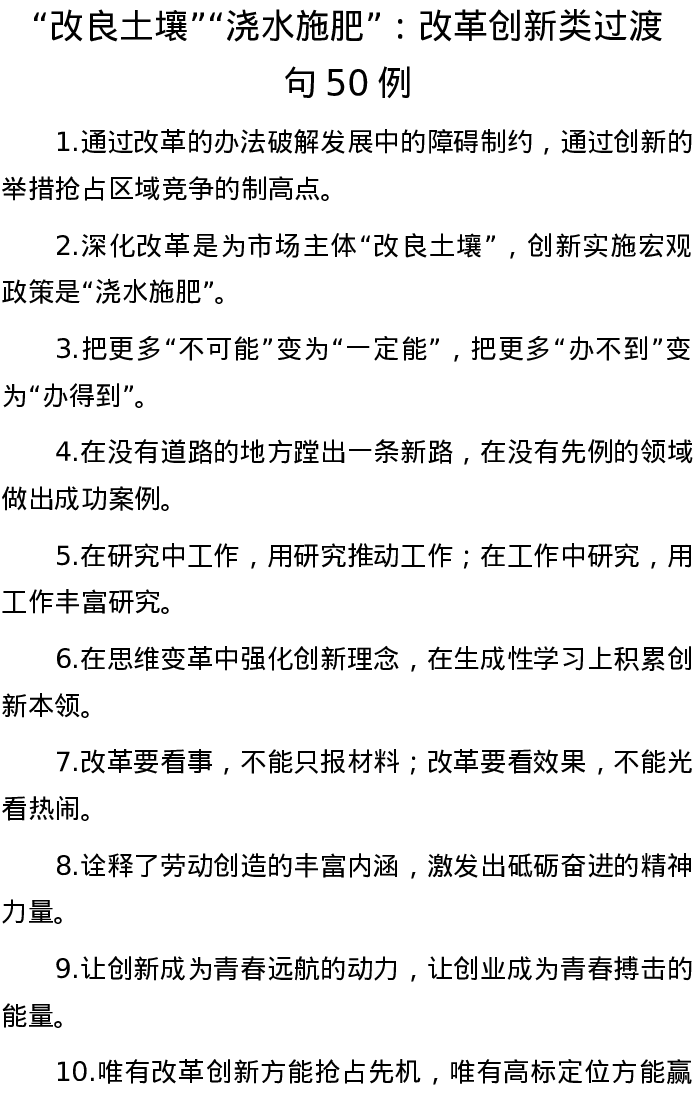 20220920【写作素材】“改良土壤”“浇水施肥”:改革创新类过渡句50例