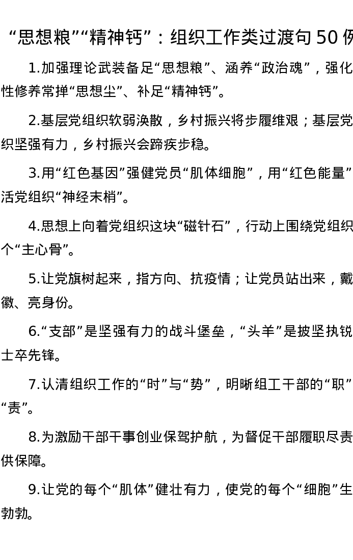 20220921【写作素材】“思想粮”“精神钙”:组织工作类过渡句50例