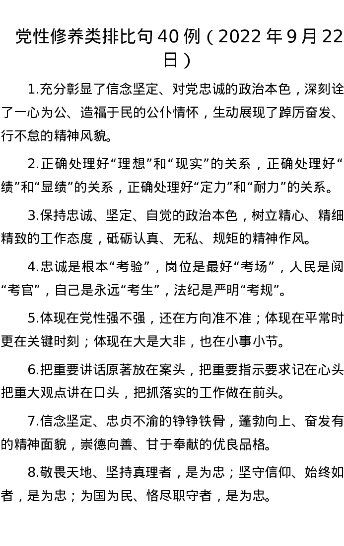 20220922【写作素材】党性修养类排比句40例(2022年9月22日)