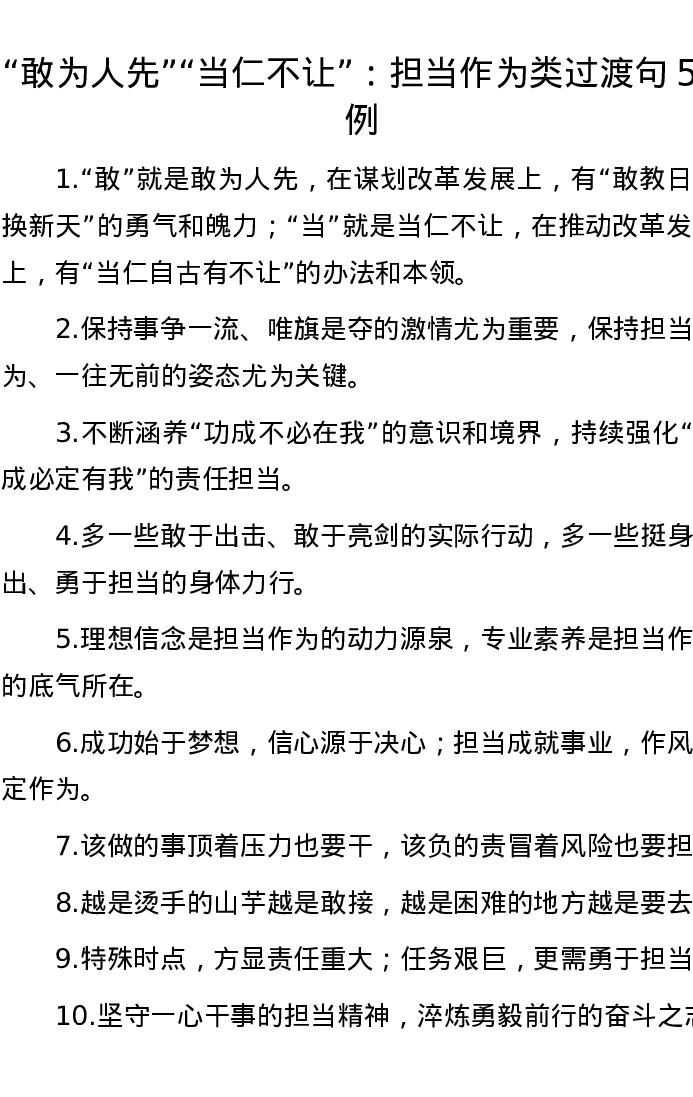 20220923【写作素材】“敢为人先”“当仁不让”:担当作为类过渡句50例