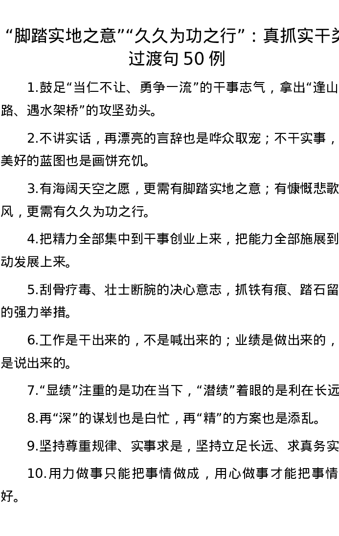 20220924【写作素材】“脚踏实地之意”“久久为功之行”:真抓实干类过渡句50例