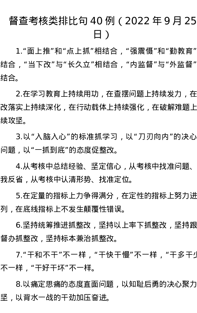 20220925【写作素材】督查考核类排比句40例(2022年9月25日)