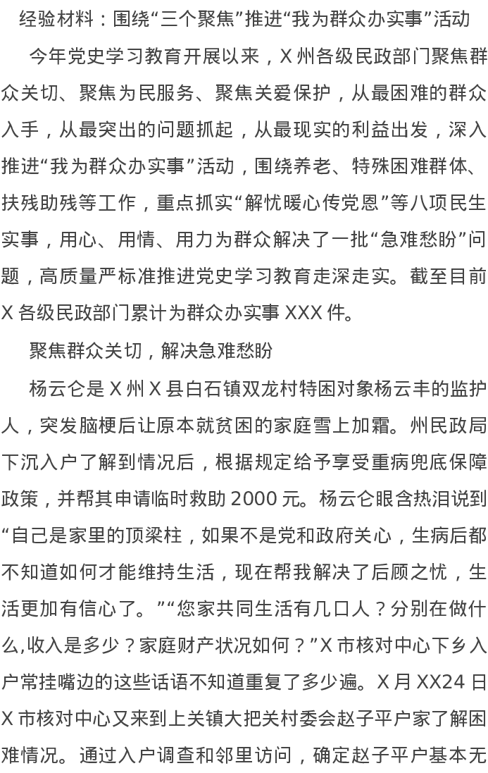 20220121经验材料:围绕“三个聚焦”推进“我为群众办实事”活动