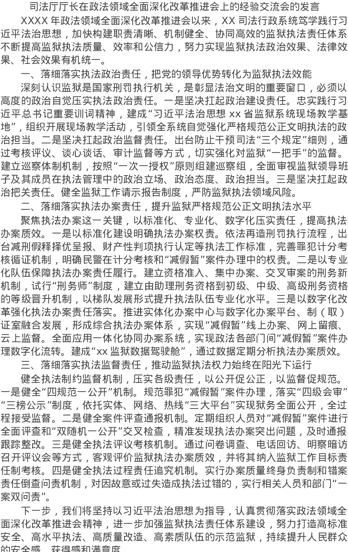 20220123司法厅厅长在政法领域全面深化改革推进会上的经验交流会的发言