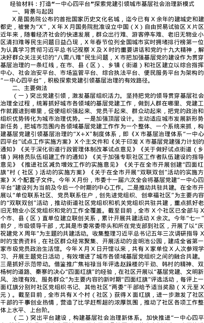 20220124经验材料:打造“一中心四平台”探索党建引领城市基层社会治理新模式