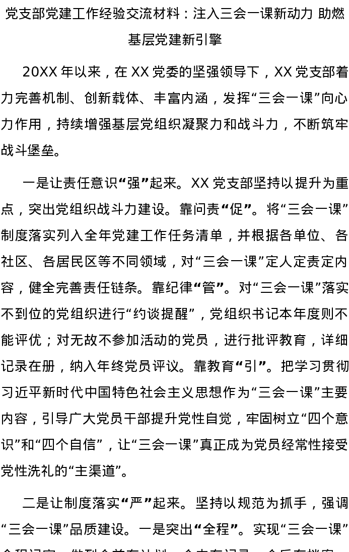 20220212党支部党建工作经验交流材料:注入三会一课新动力 助燃基层党建新引擎