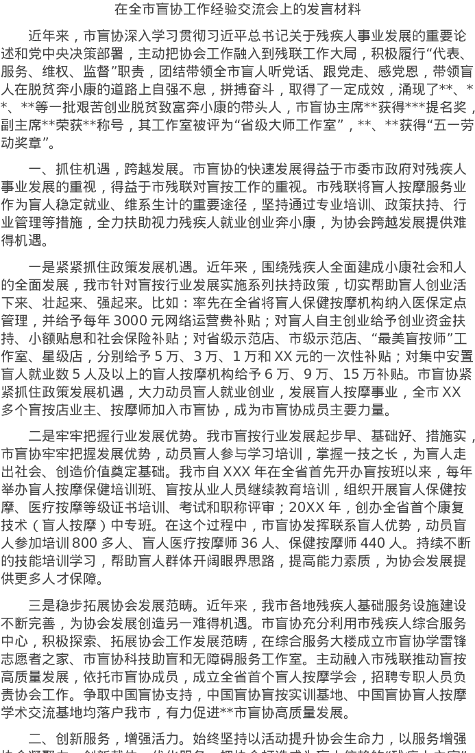 20220217在全市盲协工作经验交流会上的发言材料