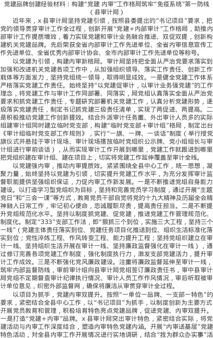 20220227党建品牌创建经验材料:构建“党建 内审”工作格局筑牢“免疫系统”第一防线(县审计局)
