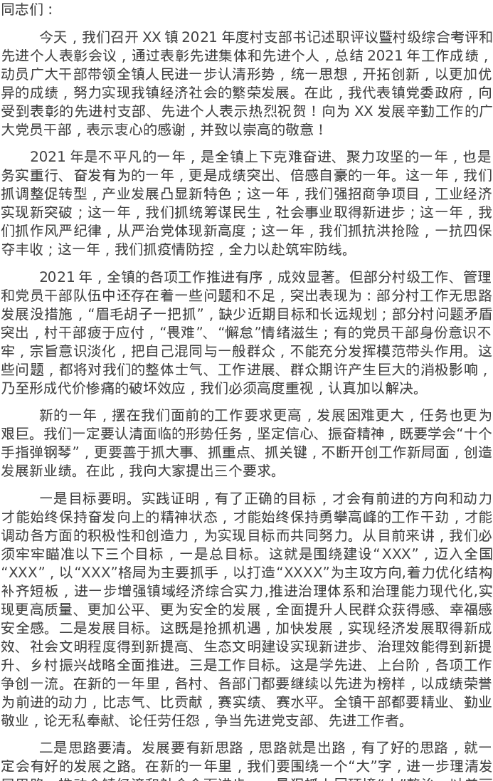 20220302在村级综合考评和先进个人表彰会上的讲话