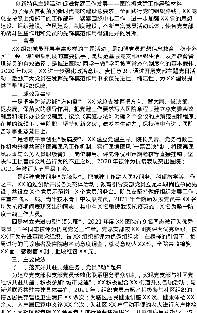 20220307创新特色主题活动 促进党建工作发展——医院抓党建工作经验材料