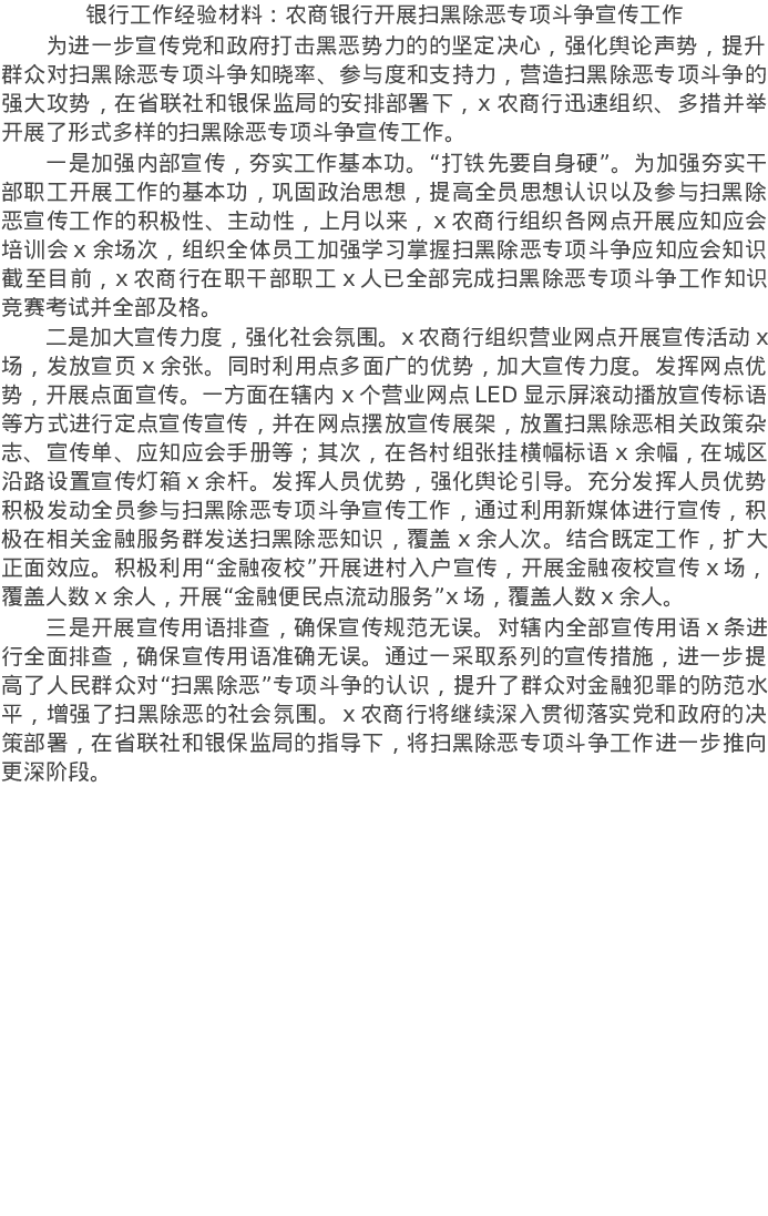 20220311银行工作经验材料:农商银行开展扫黑除恶专项斗争宣传工作