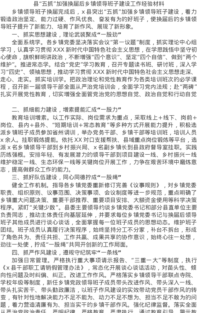 20220329县“五抓”加强换届后乡镇领导班子建设工作经验材料