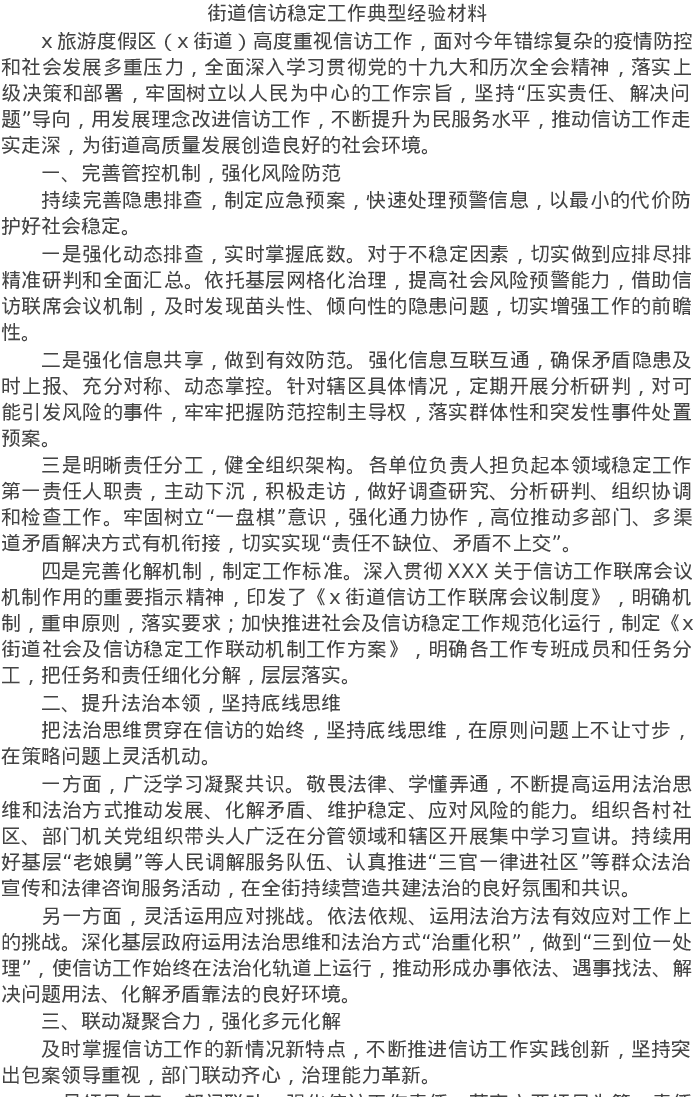 20220404街道信访稳定工作典型经验材料