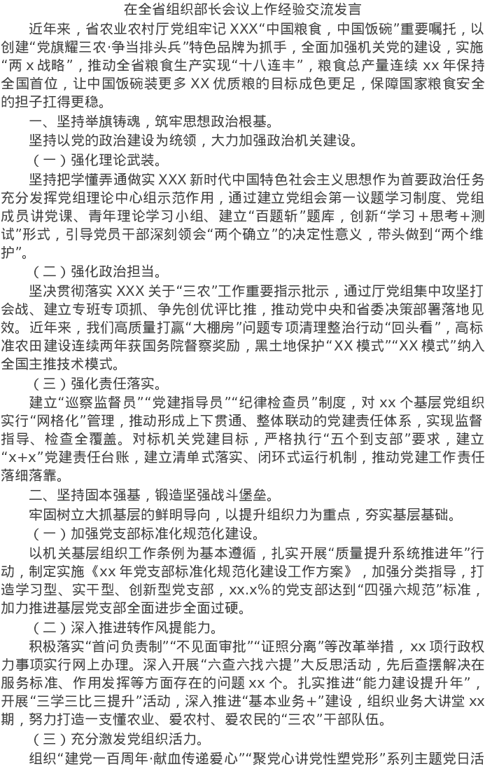 20220406在全省组织部长会议上作经验交流发言