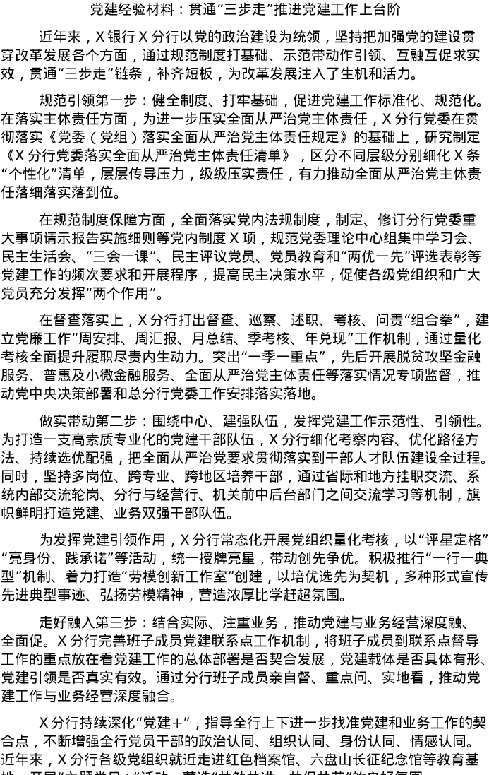 20220419党建经验材料:贯通“三步走”推进党建工作上台阶