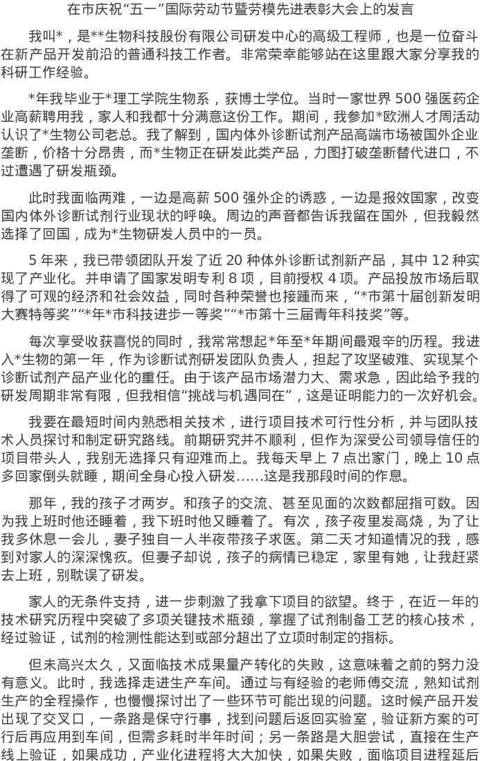 20220422在市庆祝“五一”国际劳动节暨劳模先进表彰大会上的发言