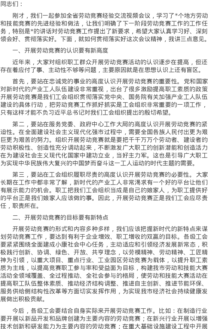 20220423在全省劳动竞赛经验交流视频会议上的讲话
