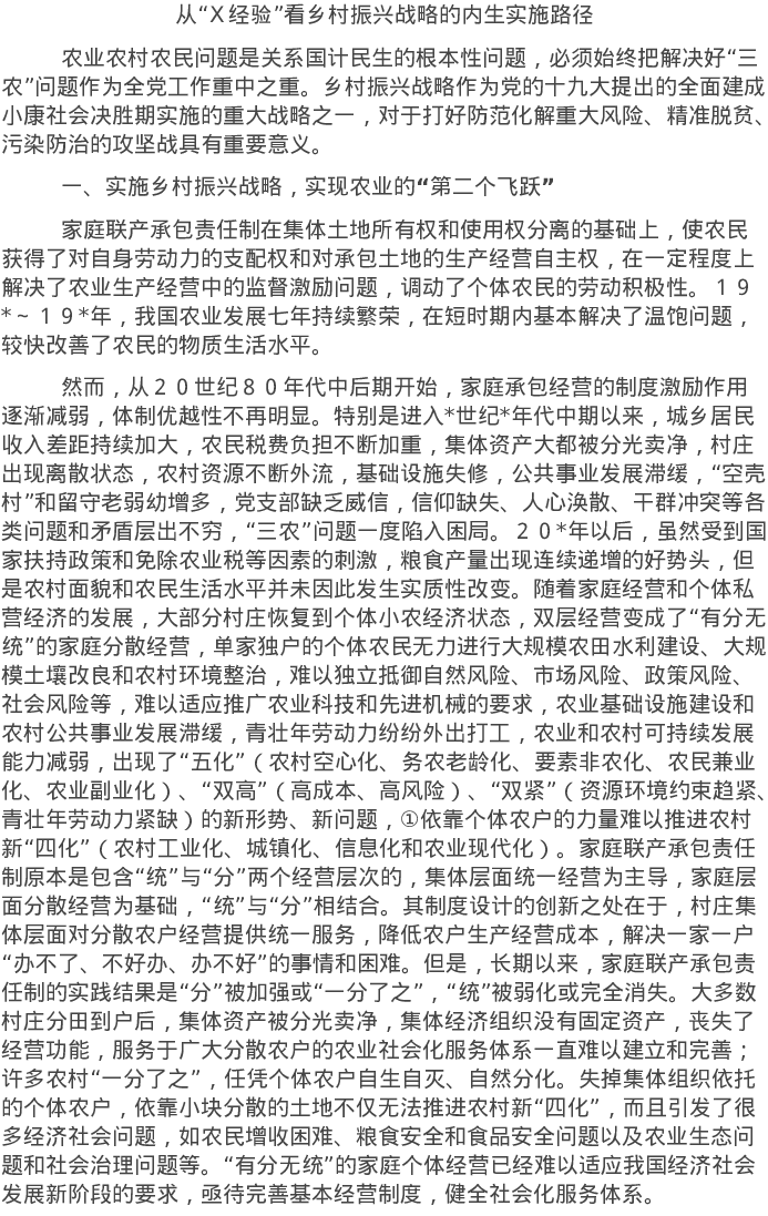 20220426从“X经验”看乡村振兴战略的内生实施路径