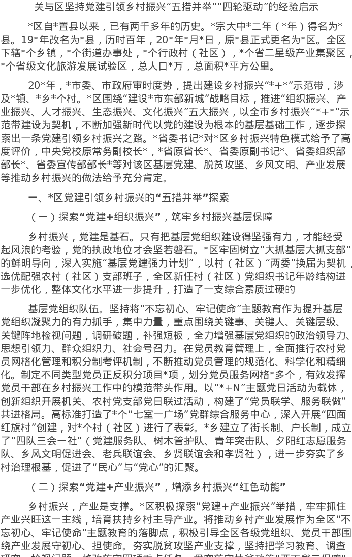 20220428关与区坚持党建引领乡村振兴“五措并举”“四轮驱动”的经验启示