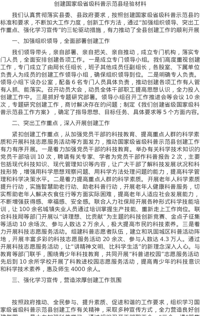 20220428创建国家级省级科普示范县经验材料