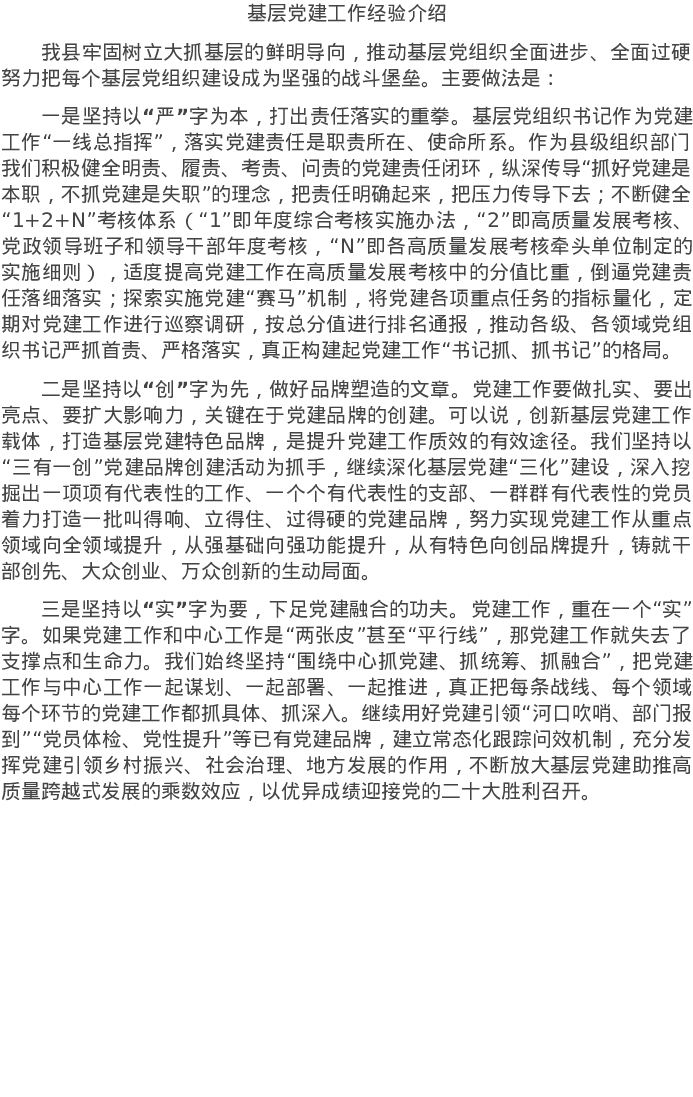 20220501基层党建工作经验介绍