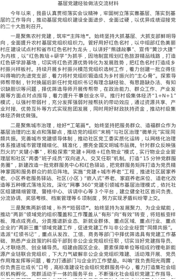 20220506基层党建经验做法交流材料