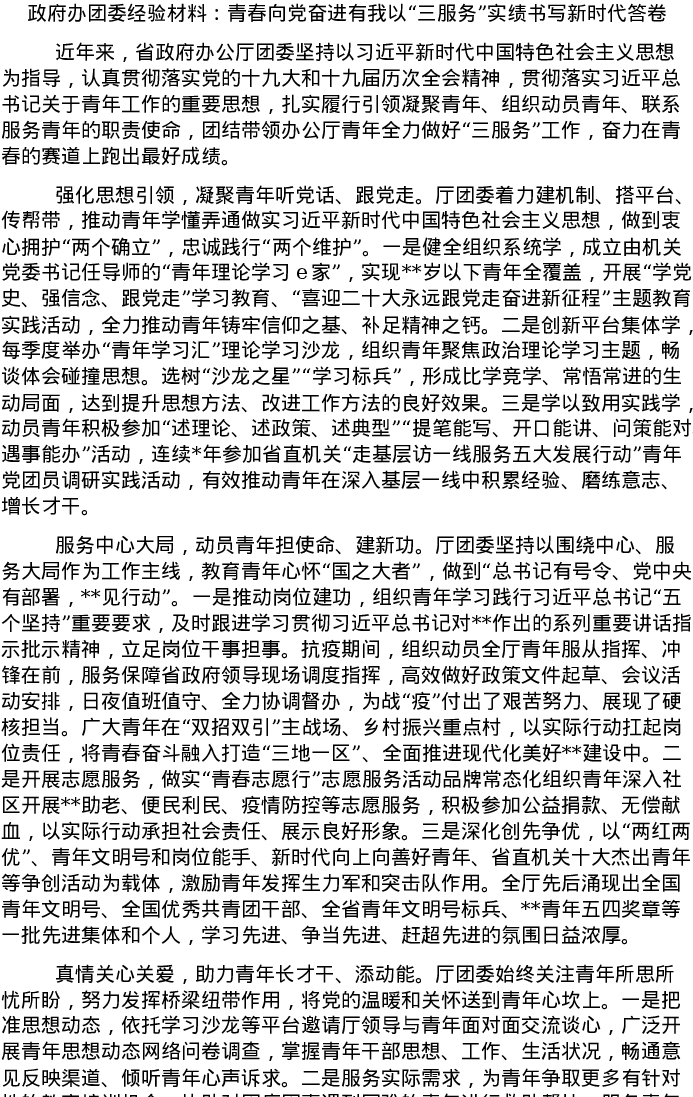 20220513政府办团委经验材料:青春向党奋进有我以“三服务”实绩书写新时代答卷