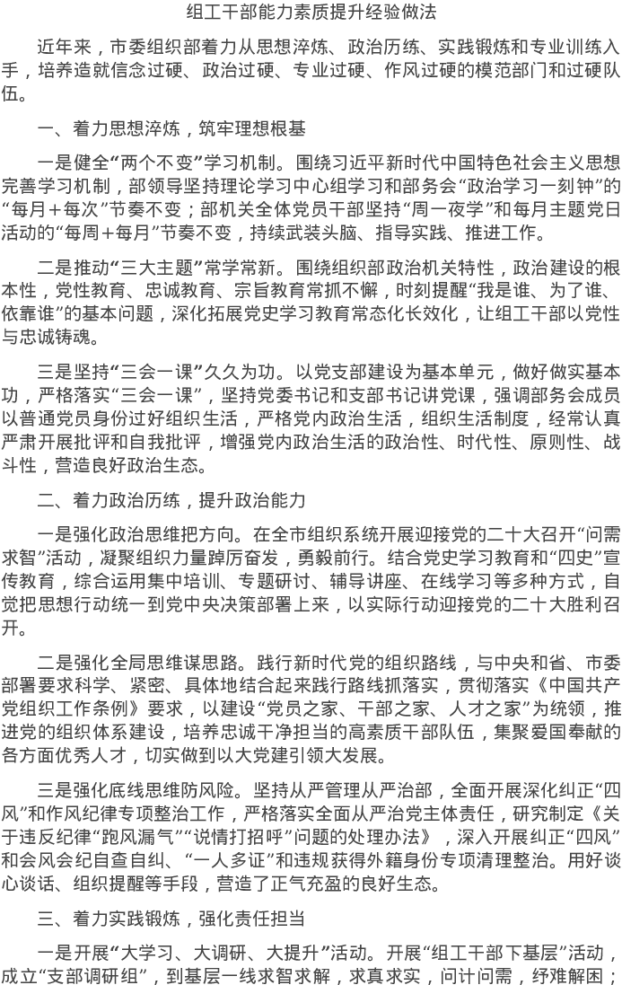 20220514组工干部能力素质提升经验做法