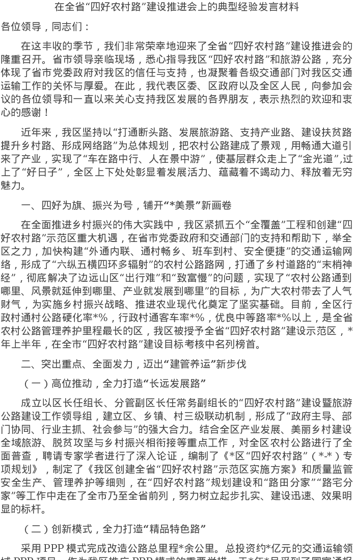 20220515在全省“四好农村路”建设推进会上的典型经验发言材料