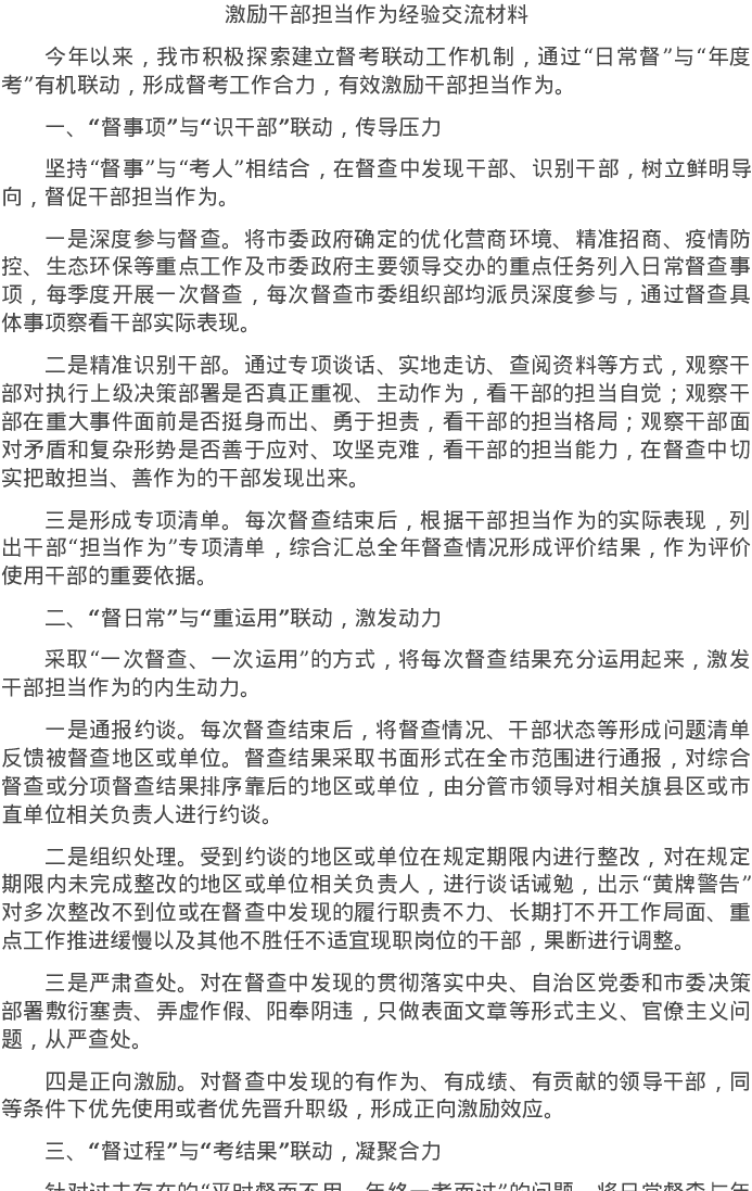 20220515激励干部担当作为经验交流材料