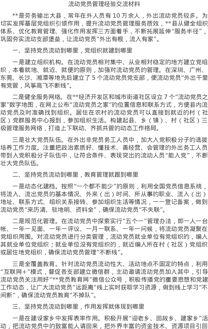 20220517流动党员管理经验交流材料