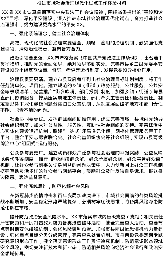 20220526推进市域社会治理现代化试点工作经验材料