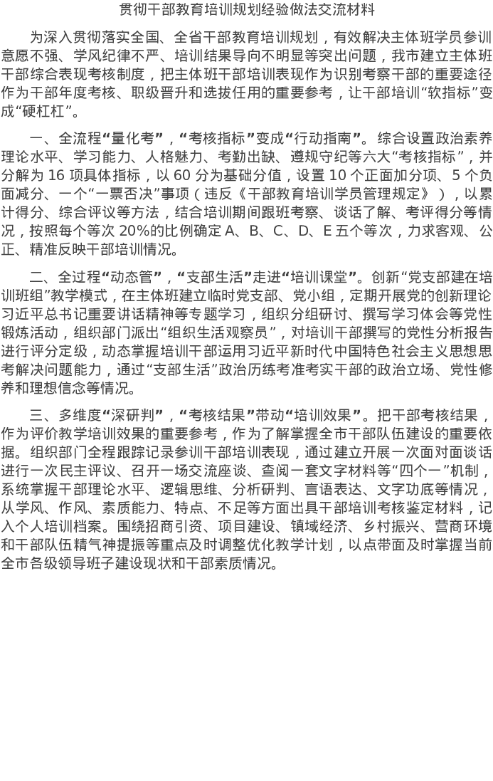 20220606贯彻干部教育培训规划经验做法交流材料