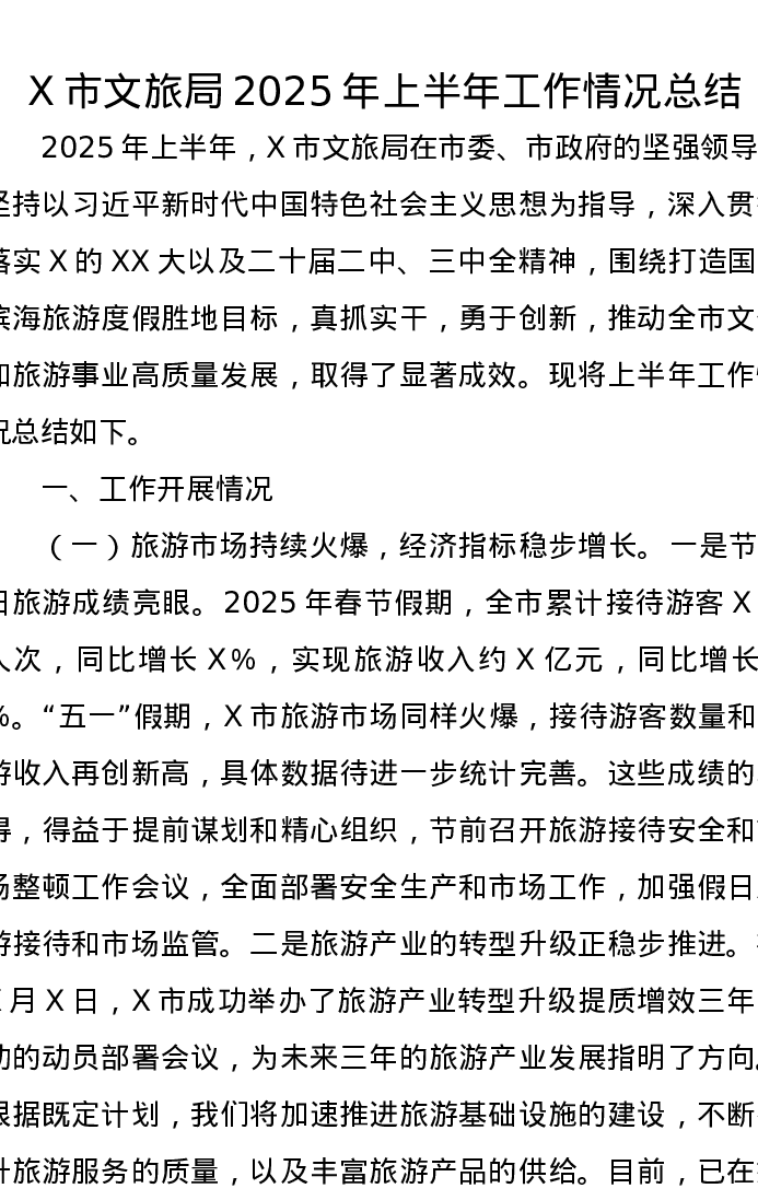 X市文旅局2025年上半年工作情况总结