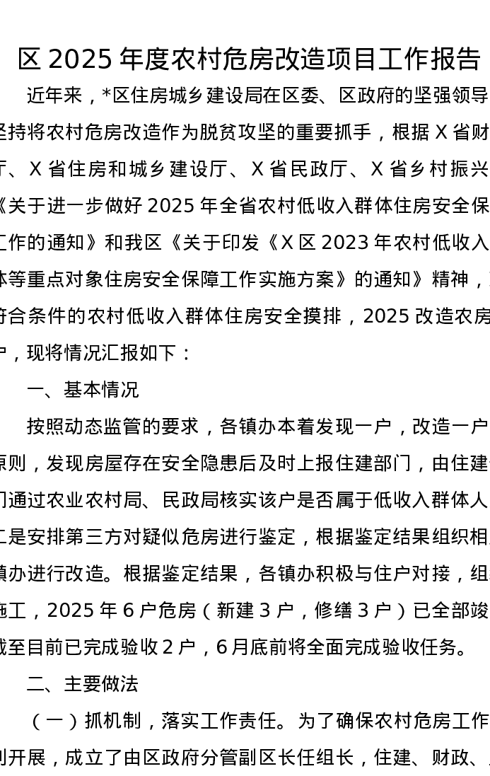 区2025年度农村危房改造项目工作报告